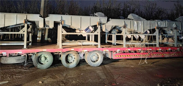 專車發(fā)貨:杭州客戶訂購的康振機械1540-2P圓振篩和9米皮帶機
