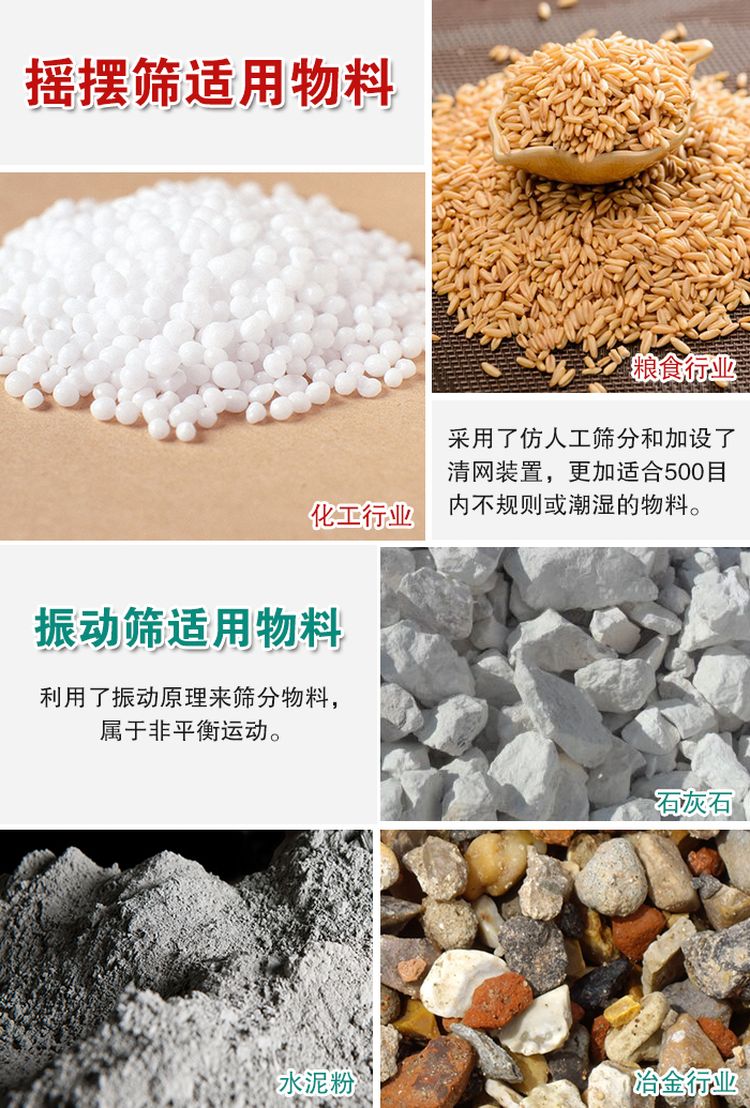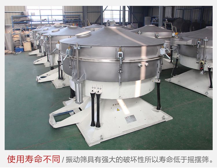 搖擺篩由于采用了仿人工篩分和加設(shè)了清網(wǎng)裝置,所以更加適合500目內(nèi)不規(guī)則或潮濕的物料,克服了普通振動篩的堵網(wǎng)風(fēng)險,而振動篩屬于非平衡破壞暴力運動,利用了振動原理來篩分物料,所以有時還會破壞物料,所以對于一些顆粒狀結(jié)晶焦脆物料,建議使用搖擺篩,其篩分精度可達(dá)95% 以上。