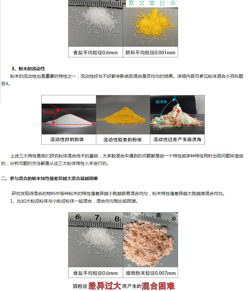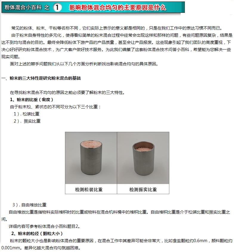 解決方法是混合之前要針對這樣的粉體做相應的混前預處理。詳細內(nèi)容參見粉體混合小百科題目7.