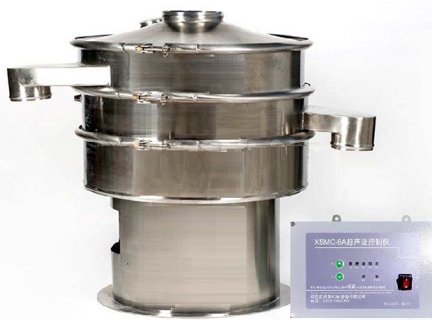 超聲波振動(dòng)篩是將220V、50Hz或110V、60Hz電能轉(zhuǎn)化為36KHz的高頻電能,輸入超聲換能器,將其變成36KHz機(jī)械振動(dòng),產(chǎn)生的功率超聲波使篩網(wǎng)作高頻振動(dòng)。篩網(wǎng)上的物料在作低頻旋振運(yùn)動(dòng)的同時(shí),疊加上超聲振動(dòng),既可防止網(wǎng)孔堵塞,又可使篩分機(jī)提高產(chǎn)量和質(zhì)量,從而達(dá)到快速篩分和清網(wǎng)的目的,使超微細(xì)粉篩分成為易事。該系統(tǒng)在傳統(tǒng)的振動(dòng)篩基礎(chǔ)上在篩網(wǎng)上引入一個(gè)低振幅、高頻率的超聲振動(dòng)波(機(jī)械波),以改變超微細(xì)分體的篩分性能。特別適合高附加值精細(xì)分體的用戶(hù)使用。