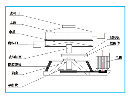 振動(dòng)電機(jī):是設(shè)備的主要?jiǎng)恿碓?,通過振動(dòng)電機(jī)激振力的作用使物料在篩面上運(yùn)動(dòng)。