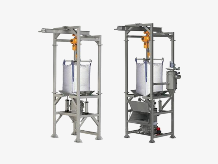 起重設(shè)備:自身攜的帶起重設(shè)備將大袋(噸袋)吊裝到卸料機(jī)的機(jī)架上,不需用外界的幫助。