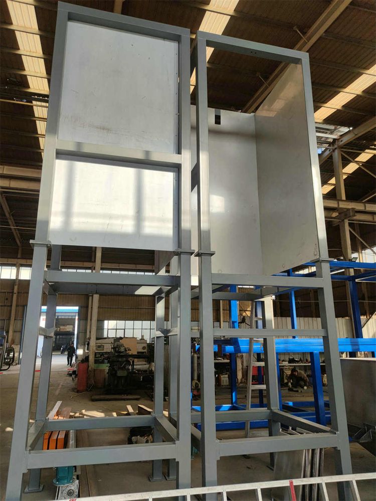結(jié)構(gòu):噸袋卸料投料站用于噸袋裝粉狀、顆粒狀物料拆包卸料作業(yè)。該設(shè)備由機(jī)架、提升裝置、隔膜閥、暫存料倉(cāng)等組成;根據(jù)工藝特點(diǎn)和設(shè)備尺寸,可以采用吊機(jī)和叉車(chē)兩種不同的方式; 可配有雙軌道,用于兩只電動(dòng)葫蘆安裝的場(chǎng)合中,提高拆袋效率;材質(zhì)分為碳鋼和不銹鋼兩種;整套設(shè)備密封性好,操作簡(jiǎn)便,極大的提高了生產(chǎn)環(huán)境和生產(chǎn)效率。