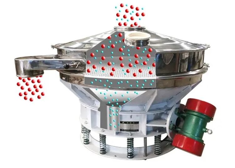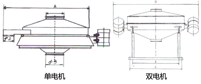 直排篩的作用原理是振動電機(jī)軸上下端的兩組偏心塊(不平衡偏心塊),將振動電機(jī)的旋轉(zhuǎn)運(yùn)動變?yōu)樗?、垂直、傾斜以及離心作用的多作用力重疊,再將這種作用力傳遞給篩面。改變上下偏心塊的相位角和可以改變激振力的大小和物料的運(yùn)動軌跡。