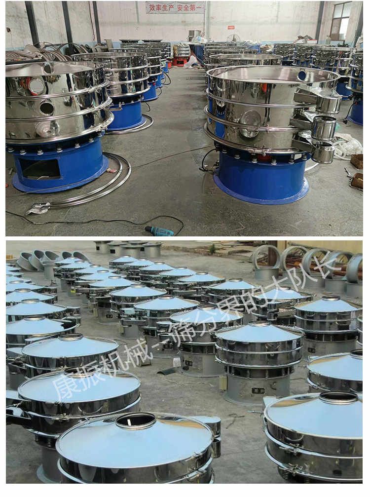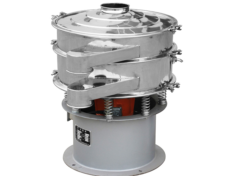 旋振篩是一種高精度細粉篩分機械,其噪音低、效率高,快速換網(wǎng)只需3-5分鐘,全封閉結(jié)構(gòu),適用于粒、粉、粘液等物料的篩分過濾。旋振篩是由直立式振動電機作激振源,電機上、下兩端安裝有偏心重錘,將電機的旋轉(zhuǎn)運動轉(zhuǎn)變?yōu)樗?、垂直、傾斜的三次元運動,再把這個運動傳遞給篩面。調(diào)節(jié)電機上、下兩端的相位角,可以改變物料在篩面上的運動軌跡。