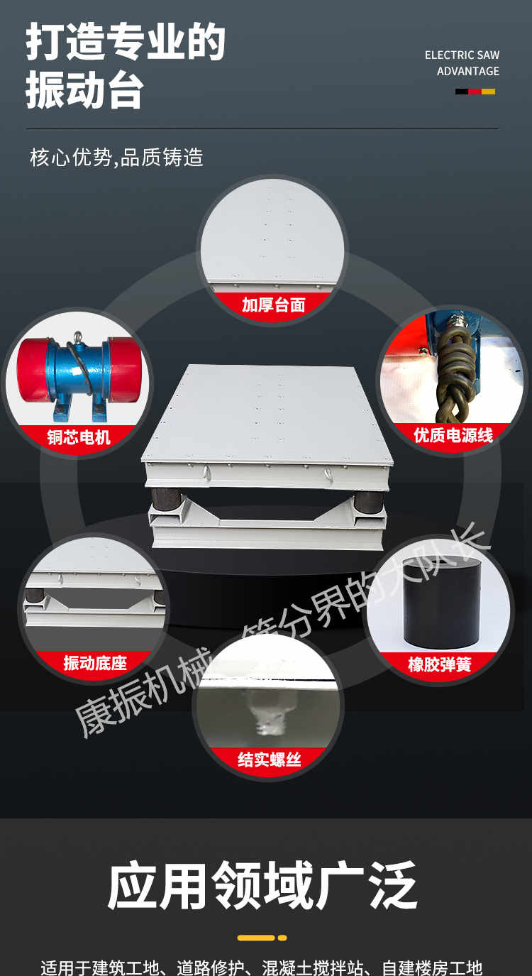 被廣泛應(yīng)用于試驗(yàn)室、現(xiàn)場(chǎng)工地作試件成型和預(yù)制構(gòu)件震實(shí)各種板柱、梁等混凝土構(gòu)件振實(shí)成型,并應(yīng)用在冶金、模具、食物、化工、建材等行業(yè)。