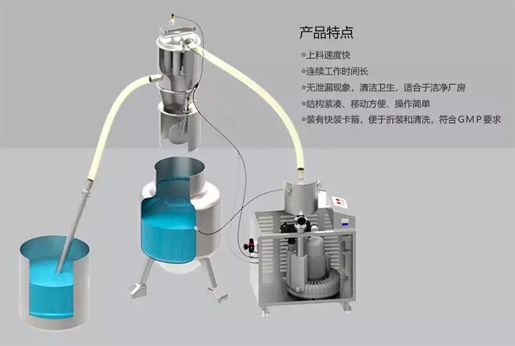 3) 占用空間小,能夠完成狹小空間的粉料輸送,使工作空間美觀大方,不受長短距離受限;